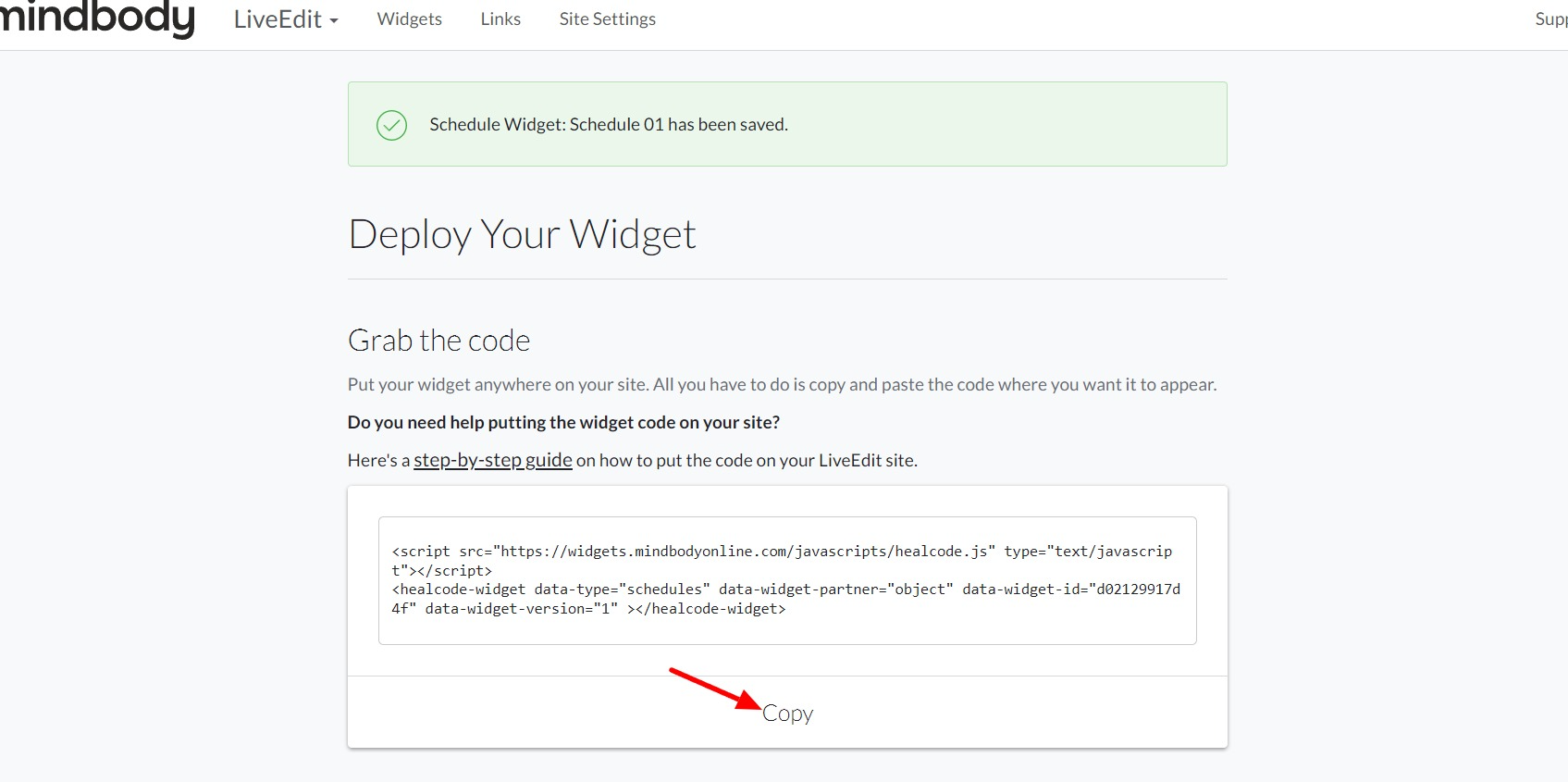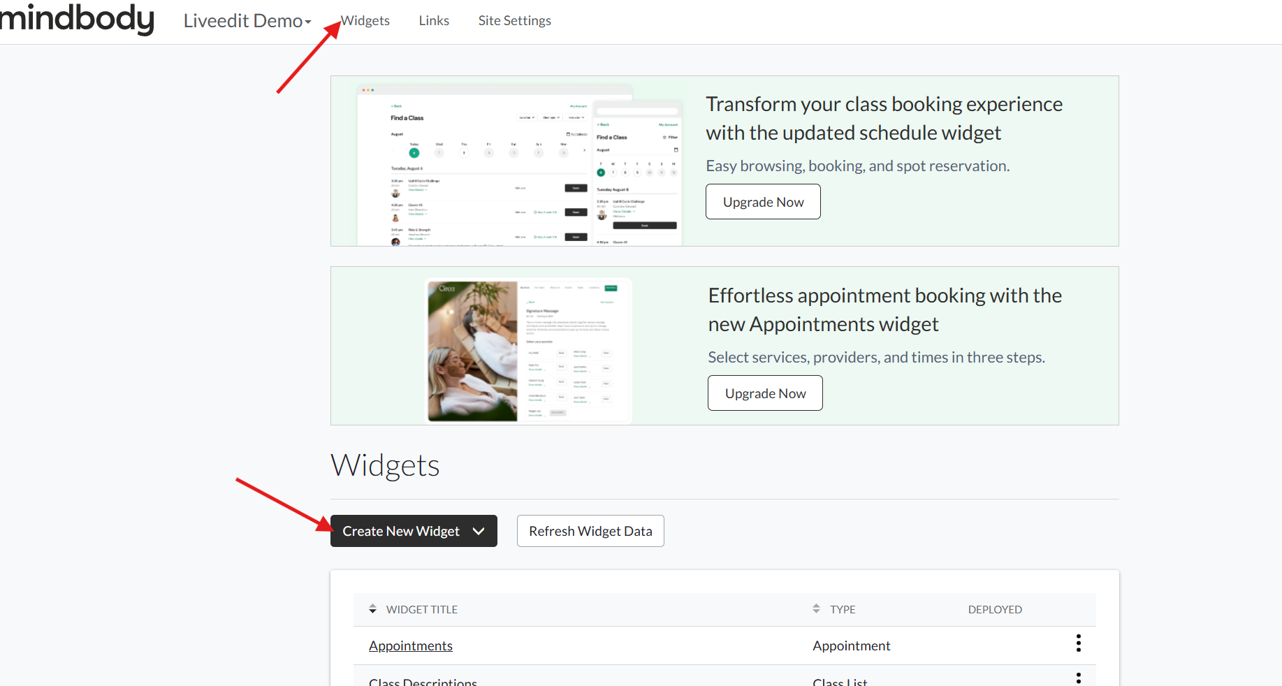 Mindbody's Branded Web Tools widgets (mindbodyonline.com/business/branded-web-tools) allow you to embed scheduling, purchasing, and much more on any website platform. These widgets are fully compatible with liveedit's website platform.